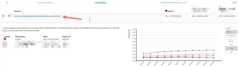 Imagine you belong to the Harper Division of Family Practice and want to explore what sort of demand exists in clinics in your division for Anxiety and Phobia comorbidities. Here’s how you can use the upgraded distribution chart: