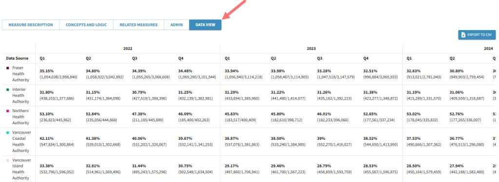 We are excited to unveil the new ‘Data View’ tab, accessible from within the Single Measure View. This feature is designed to extend your data analysis beyond our HDC Discover application, making data comparison more intuitive and familiar utilizing an exportable tabular format. The new tab presents a table that mirrors the data used in the charts, derived from your selected data sources and tailored to the time frame you’ve chosen on the graph. In addition, you can now export this data using the ‘Export to CSV’ feature, making it easier to share and analyze insights with your peers.