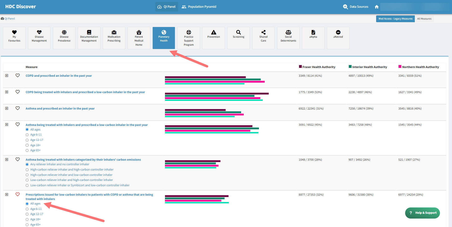 In HDC Discover, switching between multiple options within a measure is made easier with the Single Measure View page. This feature allows users to explore data for different age ranges seamlessly without navigating back to the QI Panel. For instance, let’s review how to view data for different age groups for measures, such as prescriptions for low-carbon inhalers issued to patients with COPD or asthma, without heading back to the QI panel every time.